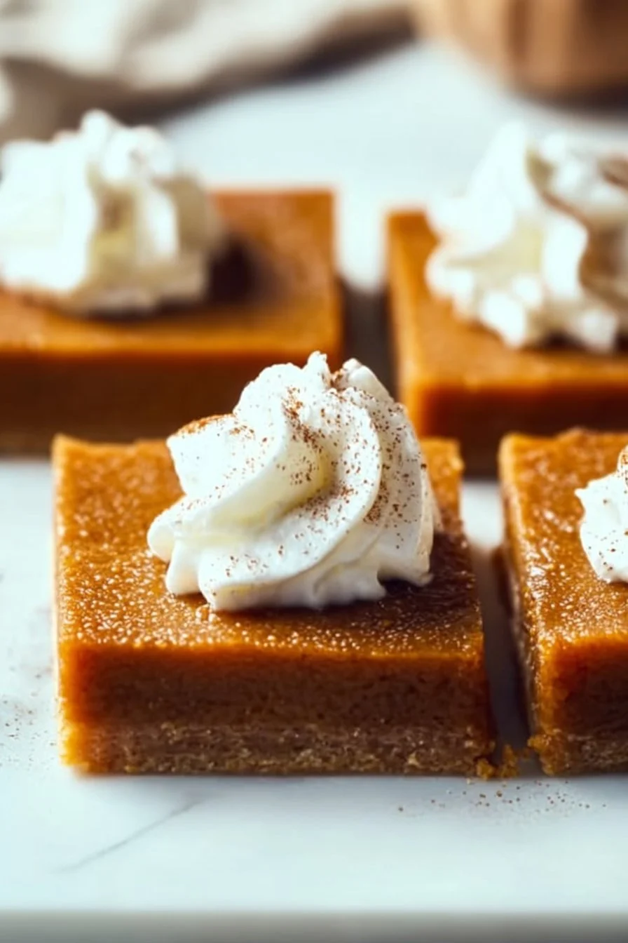 These Dairy-Free Pumpkin Pie Bars combine the rich, creamy essence of pumpkin pie with a buttery crust, perfect for those with dairy sensitivities and ideal for gatherings.