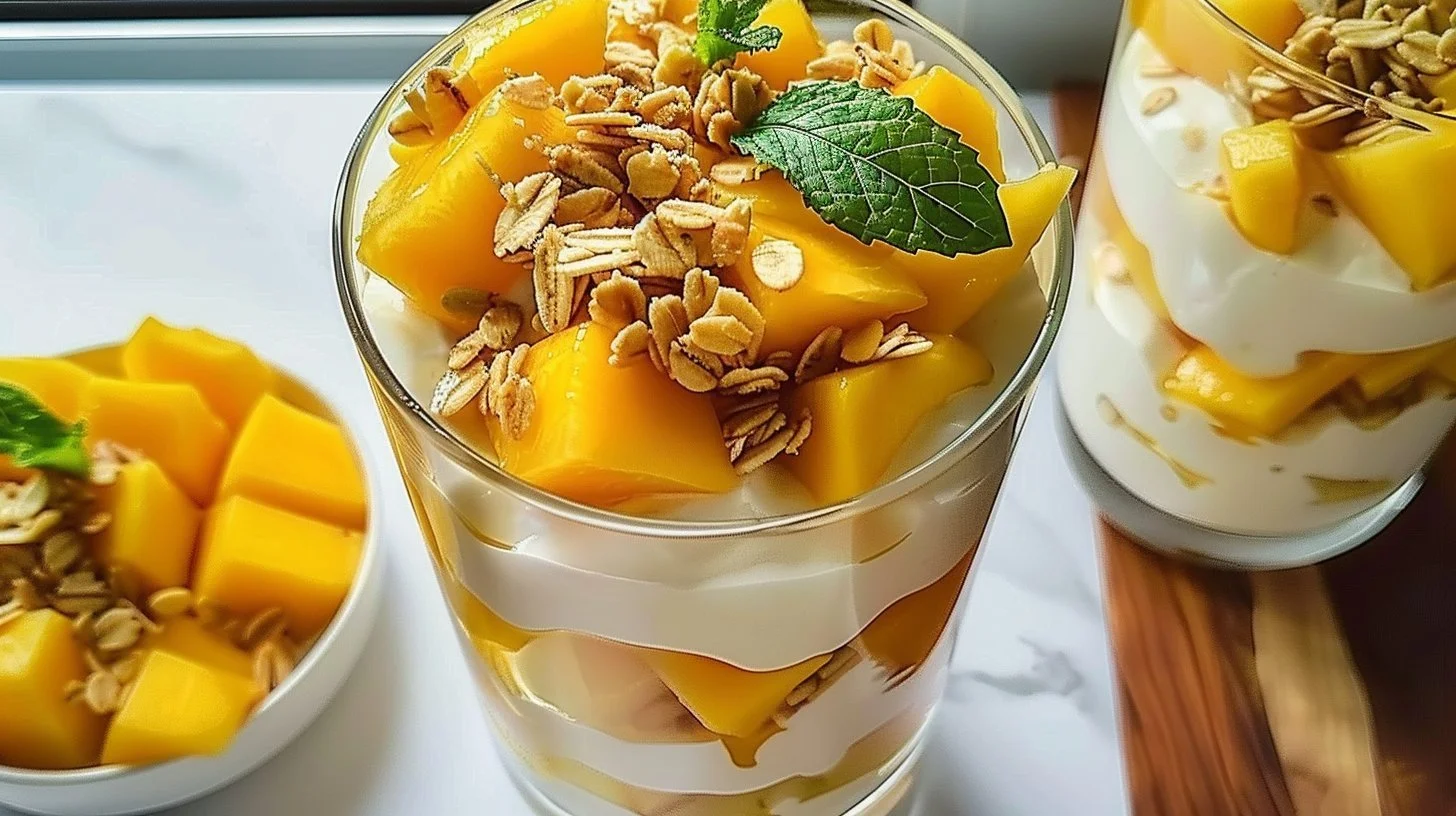 A Tropical Mango Yogurt Parfait can be served in various creative ways. Here are some fun ideas for enjoying your parfait: