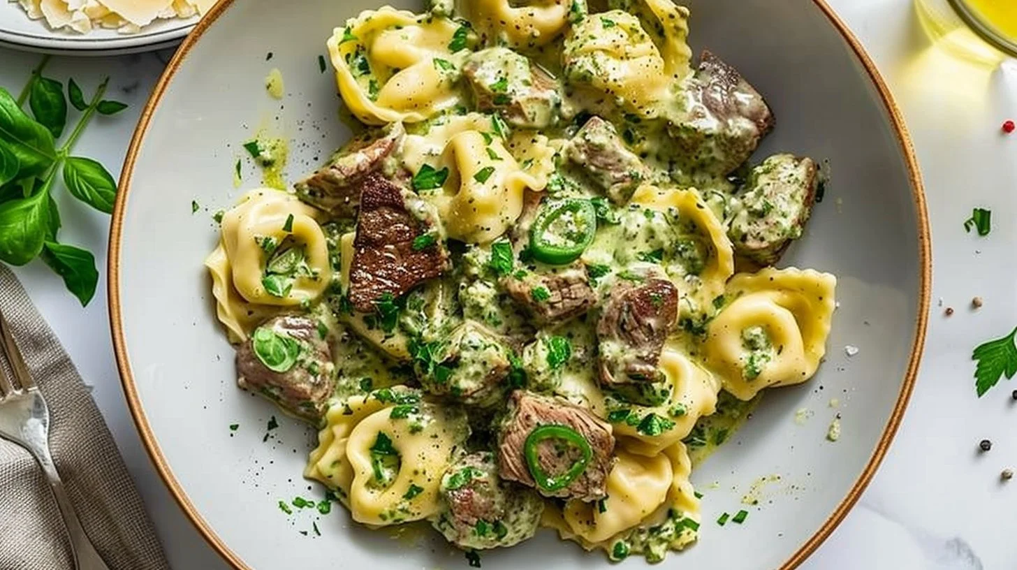 Why You’ll Love This Garlic Steak Tortellini with Pesto Cream