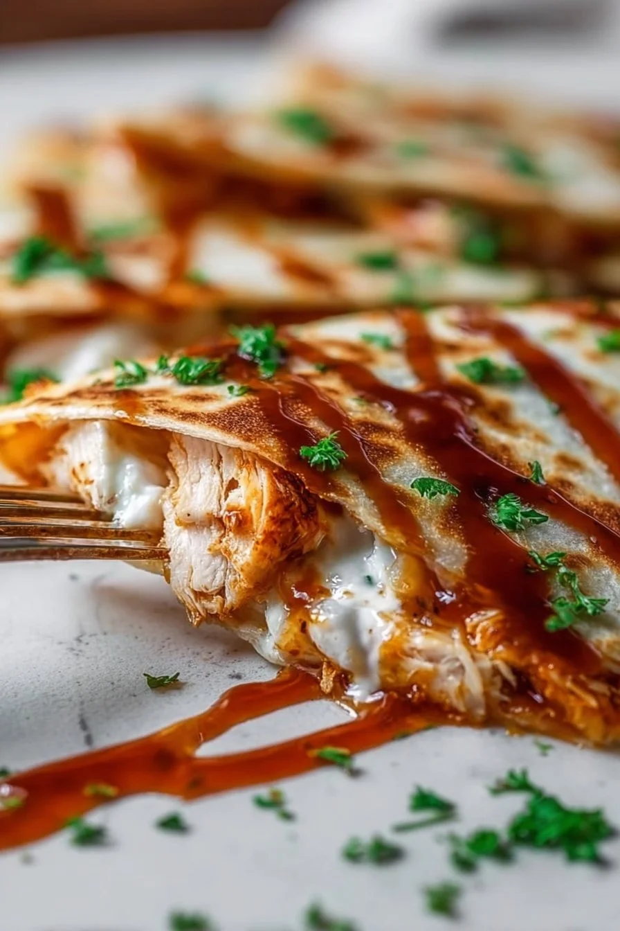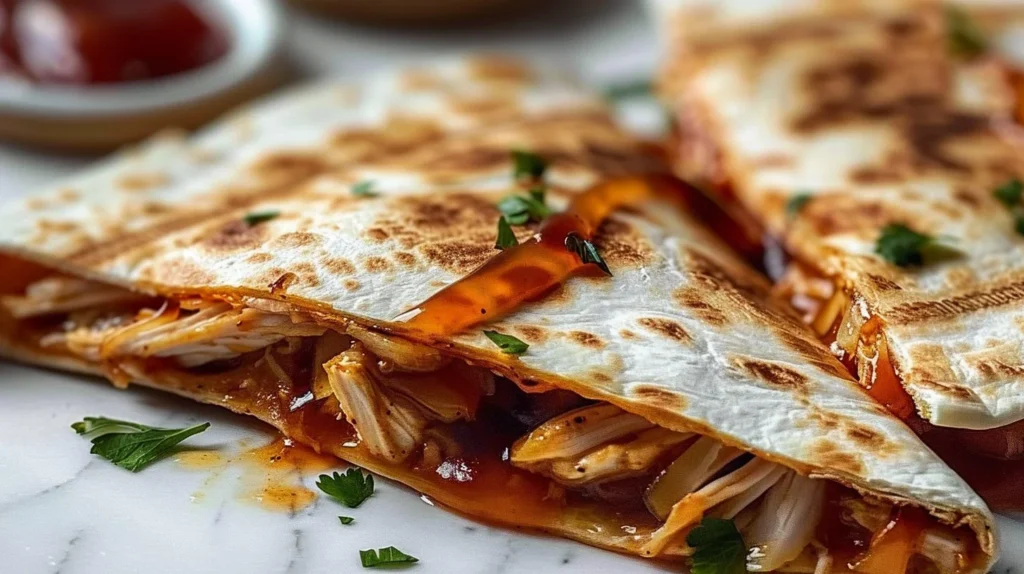 Delicious quesadillas loaded with BBQ chicken, melted cheese, and fresh veggies, delivering a perfect balance of sweetness and spice.
