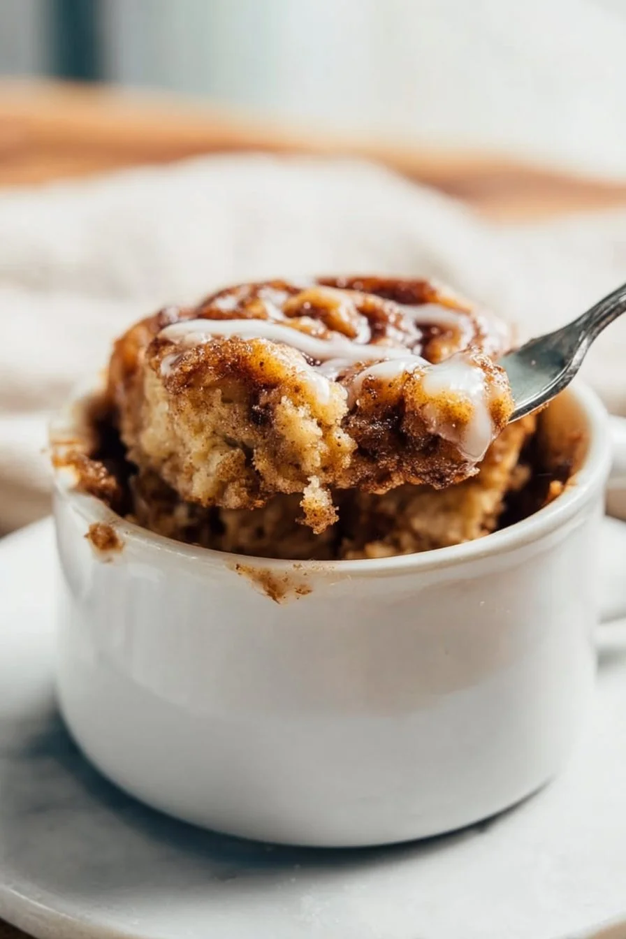 A quick and easy single-serving dessert that combines the warm flavors of cinnamon rolls with a gooey, tender mug cake, fully vegan and gluten-free.